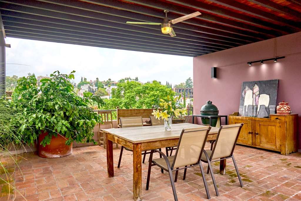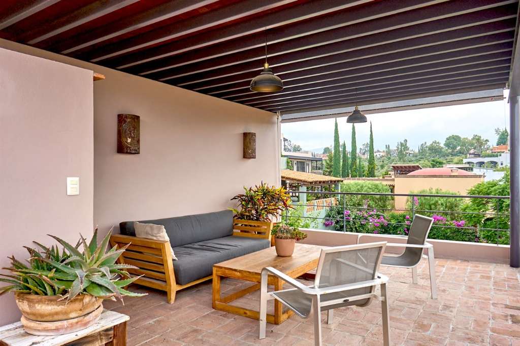A rooftop terrace crowns the home, offering yet another outdoor experience with space for dining, entertaining, or taking in panoramic views of the San Miguel de Allende skyline.