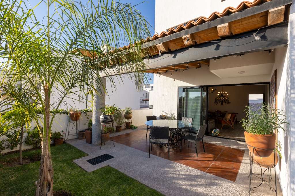 ? El jardín trasero es un verdadero tesoro, con palmeras, césped natural y un ambiente ideal para relajarse o convivir. Su ubicación en esquina brinda mayor privacidad y espacio, además de estacionamiento techado para dos autos.