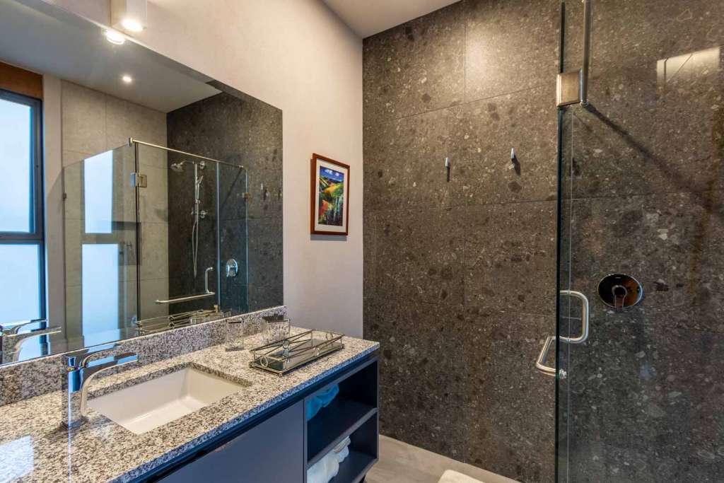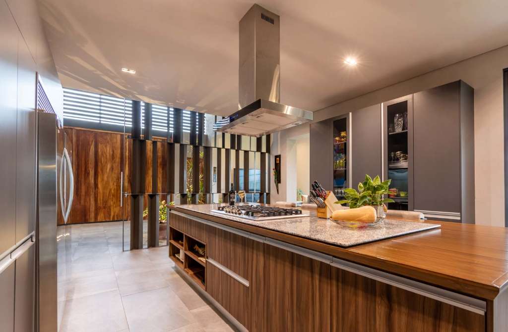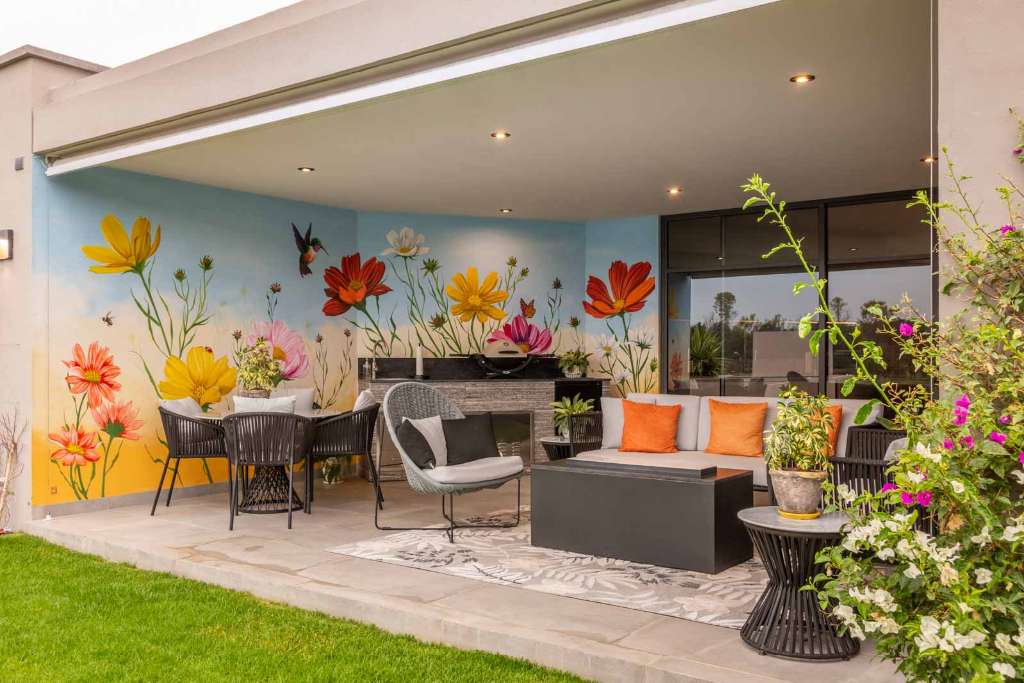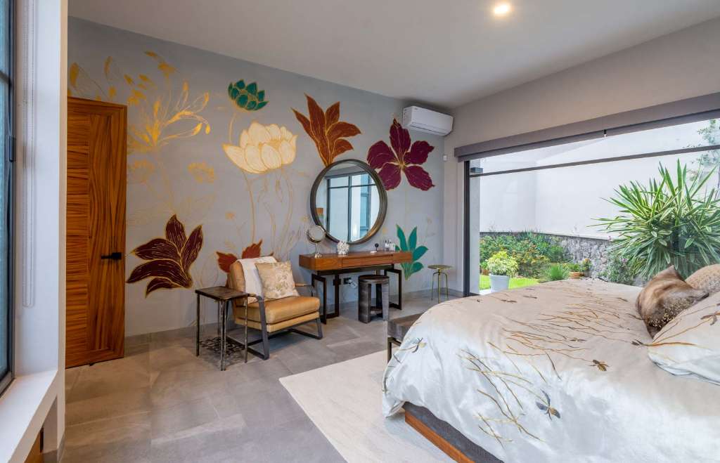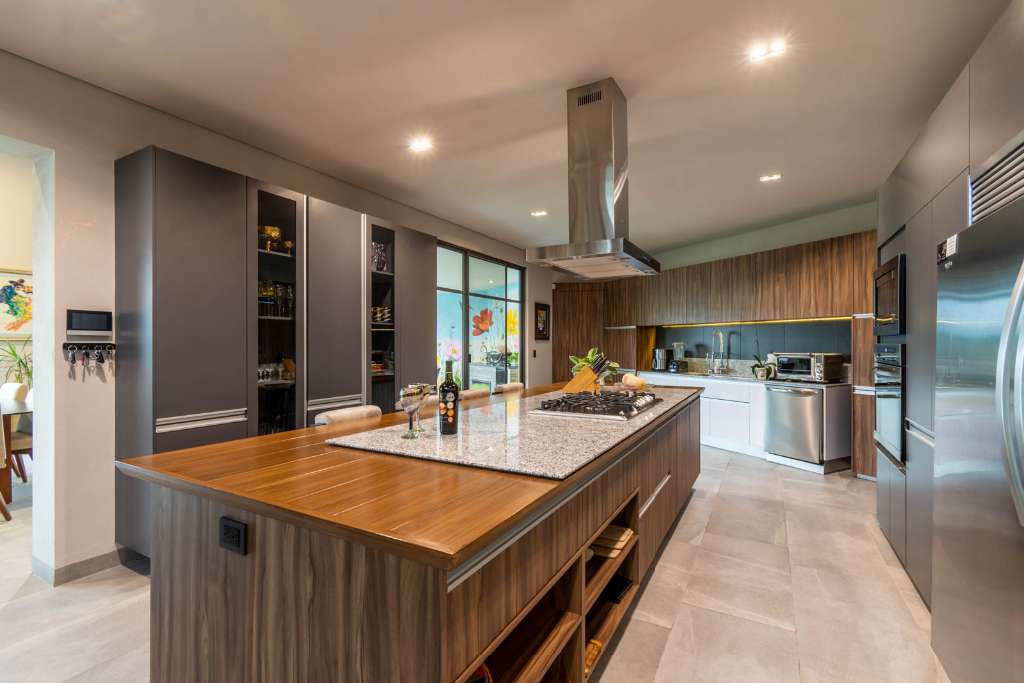 As you enter the home, you are greeted by a grand double story atrium showcasing an abundance of natural light and creating a feeling of openness and tranquility expressed throughout the home. The main floor includes a spacious living area, and a dining room that connects seamlessly to an outdoor terrace and professionally landscaped garden (with half bath off the garden) that provides gorgeous sunset views. The terrace and landscaped gardens have a custom-built outdoor kitchen and is decorated with a hand painted mural by a well-known local artist. The kitchen is a chef’s dream come true…sleek, modern, and outfitted with an oversized refrigerator/freezer, dishwasher, large walk-in pantry, top of the line stove/range. and microwave. There is a 12 ft island with four custom bar stools, plus additional counter space for meal prep and entertainment. The main floor also includes a half bath with hand painted mural, a custom laundry room and a large seating area that could serve either as a dedicated television room or an office. This space has views of the private back garden area. If you are looking for one floor living, this is the home for you, as the primary bedroom is located on this level as well. The large primary bedroom suite has a large custom walk-in closet, ensuite bath with double sink granite counters, private toilet room, and spacious shower with a skylight for ample natural lighting.Off the main entrance, the grand staircase takes you to the second floor, which includes two large additional bedroom suites, both with custom walk-in closets and ensuite bathrooms, plus a living area with balcony. The lower level of the home has enough space for two cars and a golf cart, a custom cabinetry workshop and a large storage area for all your seasonal decorations and storage needs. There is also a maid’s quarters and full bathroom which is currently outfitted as a private gym.