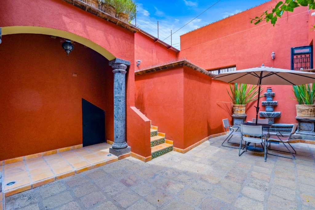 Casa Pau is a charming Mexican-style home, nestled in the heart of the vibrant San Antonio neighborhood—one of the most desirable areas in San Miguel de Allende. Featuring classic red Saltillo tile floors throughout, the house exudes warm, rustic character, blending timeless Mexican design with practical living spaces. The home includes two cozy bedrooms, ideal for a small family or guests, and a simple, functional kitchen outfitted with crisp white cabinets, creating a bright and inviting cooking space. Adjacent to the kitchen is a private courtyard, a tranquil outdoor retreat centered around a stone fountain that brings the soft sounds of flowing water—perfect for morning coffee or evening relaxation. A garage provides secure off-street parking, a rare and valuable feature in this area. One of the highlights of the home is the rooftop terrace, offering panoramic views of the surrounding hills and rooftops of the San Antonio neighborhood—a perfect spot to enjoy the sunset or entertain guests. The San