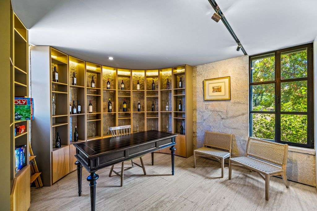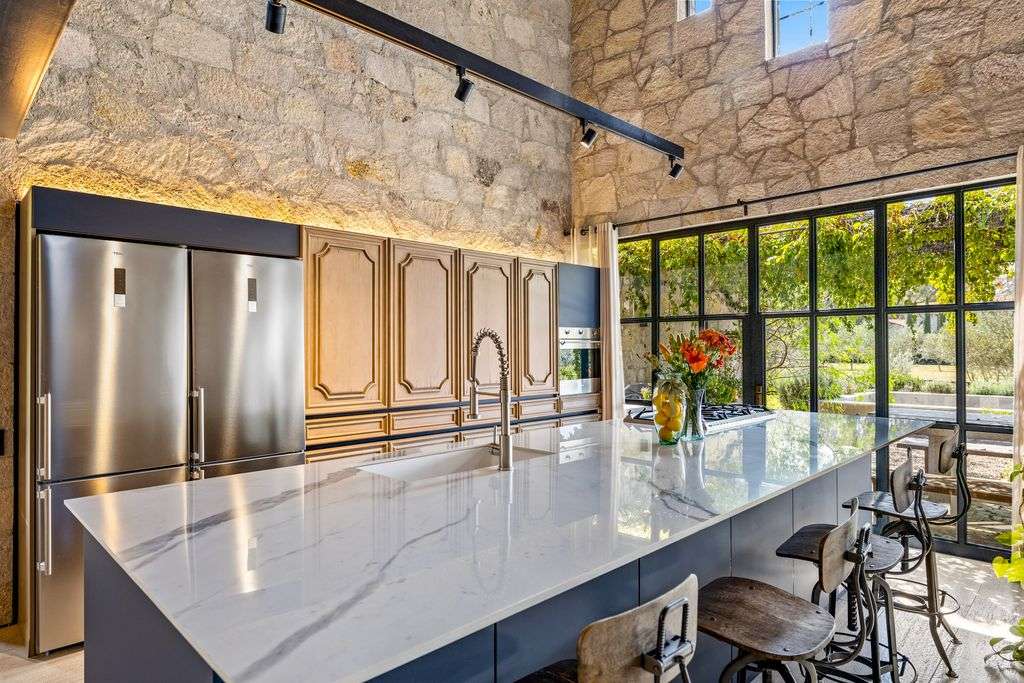 The living and dining areas are designed for both intimate gatherings and grand entertaining, enhanced by a bespoke bar and panoramic vineyard views. The gourmet kitchen blends elegance and functionality, with custom cabinetry, marble countertops, and top-tier appliances, perfect for those who love to cook and entertain in style.